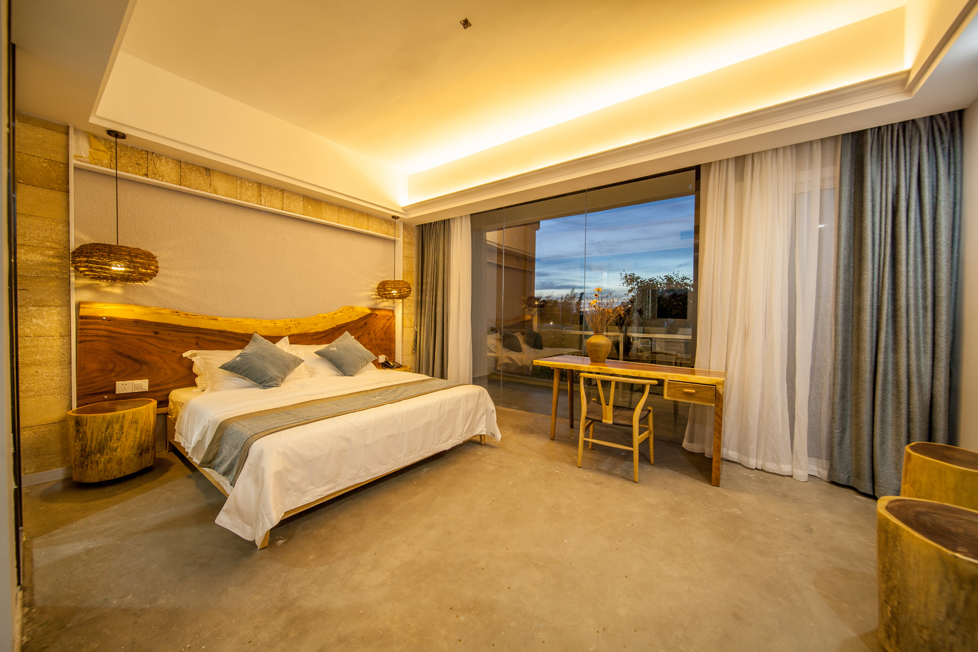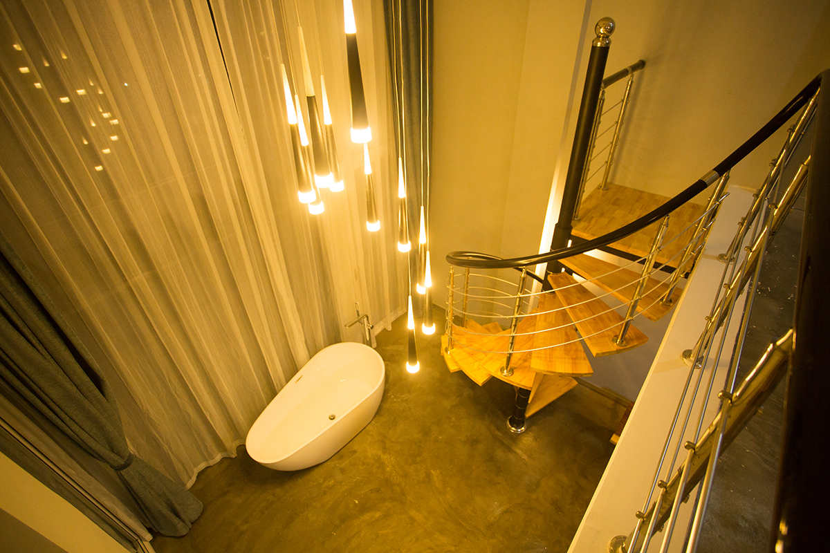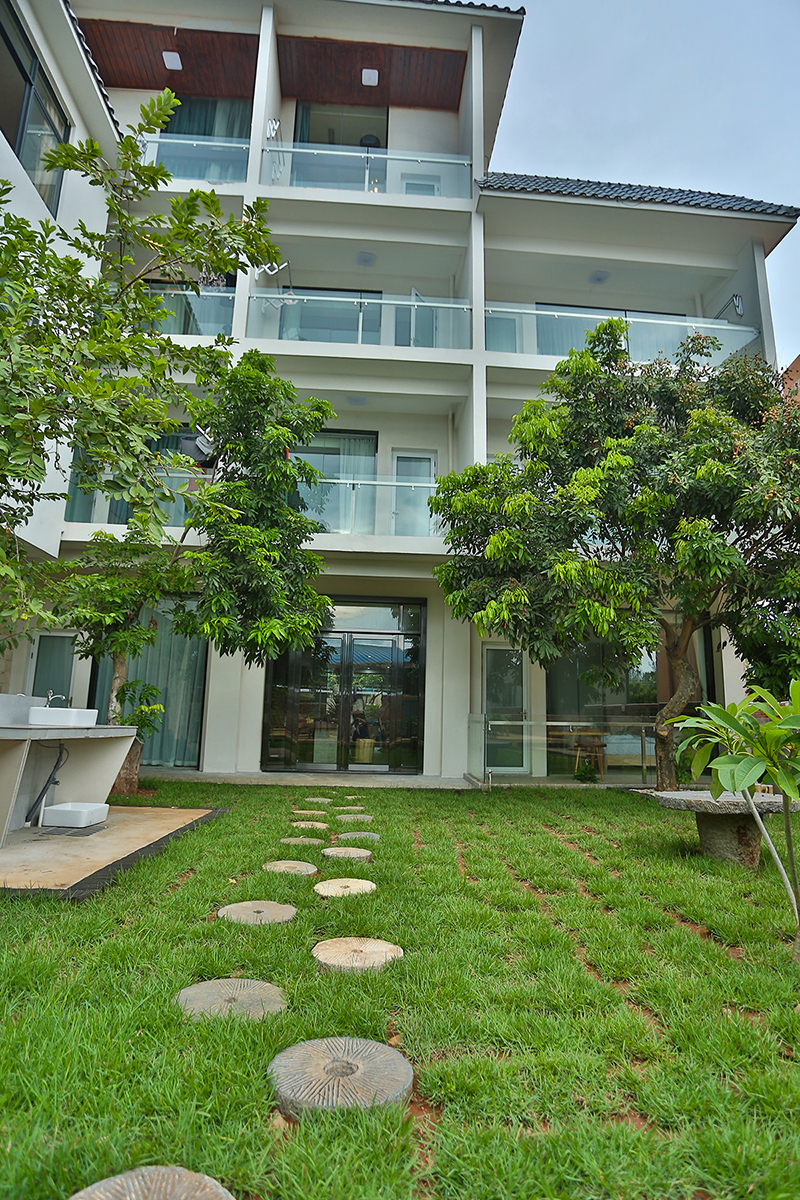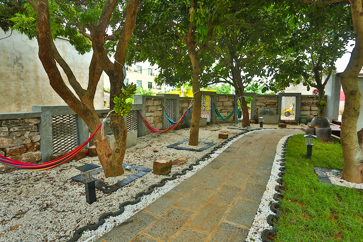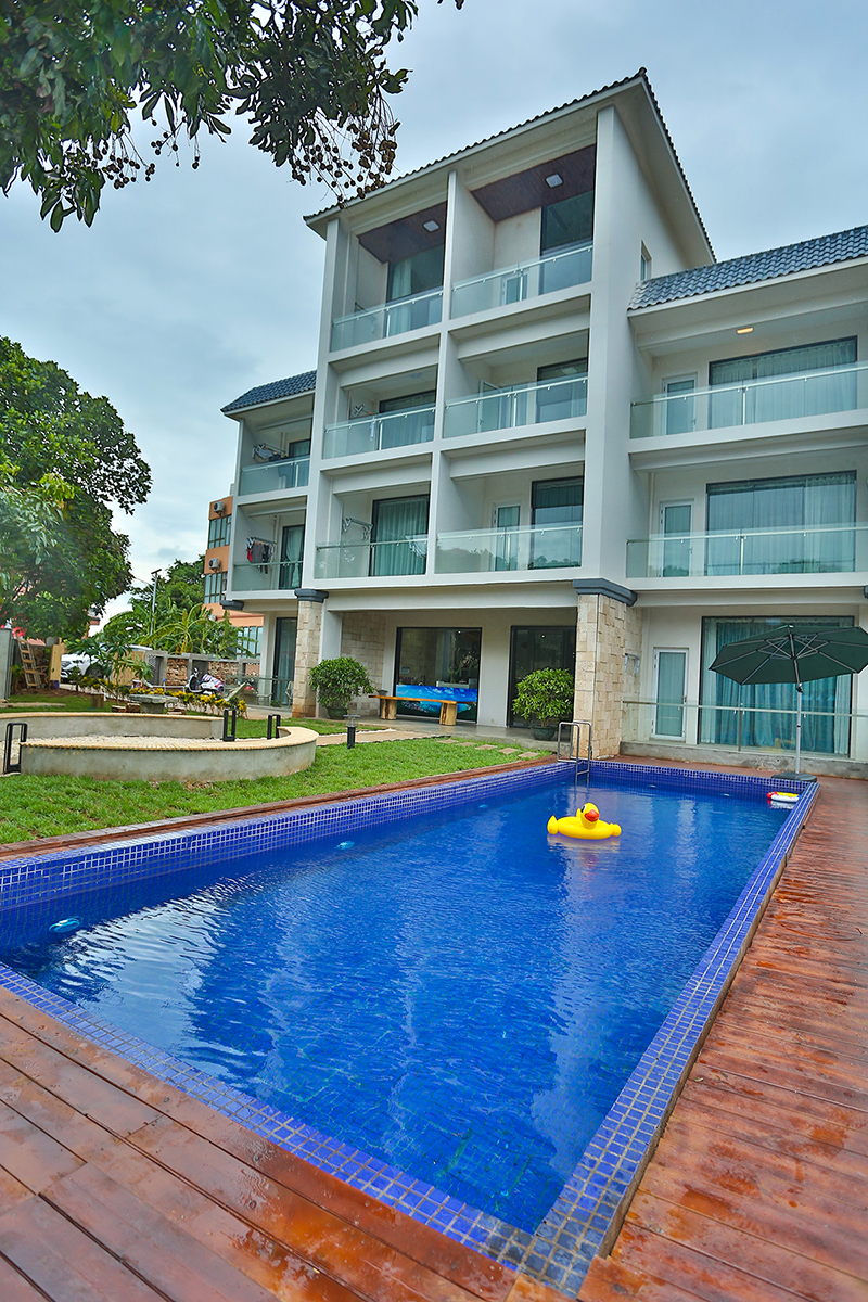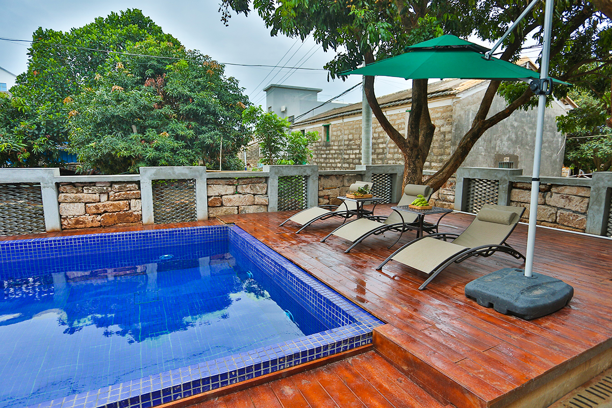 客棧時(shí)尚高檔、設(shè)施齊全、環(huán)境舒適,還配有一流的餐飲、大堂水吧、書(shū)吧一角、游泳池、前后花園、中央空調(diào)、電動(dòng)車(chē),以及大功率發(fā)電機(jī),服務(wù)配套與娛樂(lè)設(shè)施一應(yīng)俱全?腿藗兛梢栽谀熬壧稍诨▓@的吊椅上,吹著海風(fēng),喝著果汁,度過(guò)一個(gè)輕松愉快的假期。