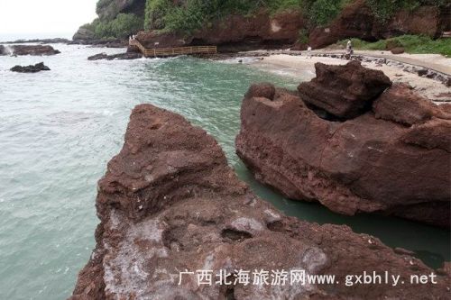 沒多久,海面上一片暗紅色的石頭呈現(xiàn)在我們眼前---火山公園! 這個景點(diǎn)是潿洲島上的一顆明珠,是火山遺跡的代表作,在火山石上仙人掌成片的旺盛的生長。在船上哼著那首老歌“陽光、沙灘、海浪、仙人掌,還有一位老船長......”從來沒有仔細(xì)體會這歌詞的意境,直到來這里,看到了,才覺得這歌真的很豐富.....