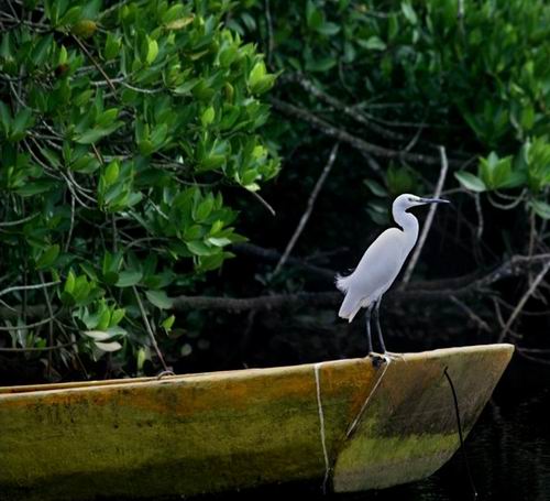 金海灣紅樹林景區(qū)內(nèi)看到成群的白鷺棲息在紅樹林上,足有幾百只,數(shù)量相比往年增加了不少。每當(dāng)漲潮時,白鷺群中有的站在枝頭,有的在林中跳躍、有的低空飛翔,溫和宜人的氣候讓白鷺群自由自在地在紅樹林間棲息、覓食。