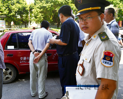 在經(jīng)過對司機(jī)的廣泛宣傳教育后,6月7日上午,北海市十家出租車公司、市交通綜合執(zhí)法支隊(duì)聯(lián)合采取行動,分別在云南路水產(chǎn)市場、天外天飯店門前等地設(shè)點(diǎn),突擊檢查出租車是否打表經(jīng)營、有無拒載等違章行為,十家出租車公司董事長、總經(jīng)理悉數(shù)參加行動。