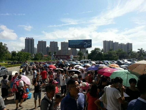 8月8日是臺(tái)風(fēng)“山竹”過境后開航的第一天,跟無數(shù)次臺(tái)風(fēng)過后一樣,翹首以盼的滯留游客市民還有無奈的旅行社工作人員蜂擁而去碼頭和各大售票處搶票,希望盡快奔赴夢(mèng)中的海上香格里拉——潿洲島,于是人山人海的壯觀又一次再現(xiàn)。售票大廳已經(jīng)無法容納長長的隊(duì)伍,于是大部分人只能打著傘在烈日下默默等候,更加悲催的是某些人士沒帶傘,小編只能說朋友回去一定記得先敷藥吧,肯定曬傷得不輕。