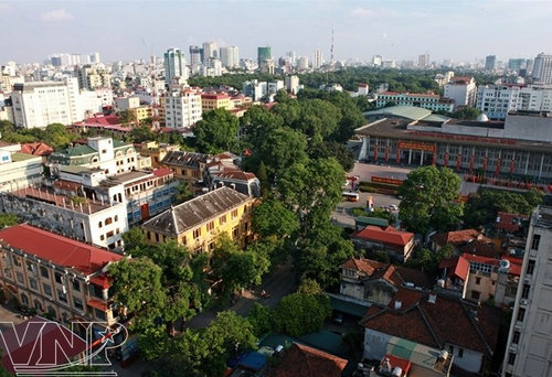 河內(nèi)中心的建筑工程與綠樹(shù)板塊相互交錯(cuò)
