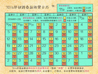 中國鐵路客戶服務(wù)中心網(wǎng)站昨天發(fā)布了2014年春運(yùn)售票公告,2014年1月16日-2月24日為2014年鐵路春運(yùn)時(shí)間。預(yù)定旅客列車互聯(lián)網(wǎng)、電話訂票預(yù)售期為20天。車站窗口、代售點(diǎn)、自動(dòng)售票機(jī)預(yù)售期為18天。春運(yùn)期間臨客車票預(yù)售期提前。