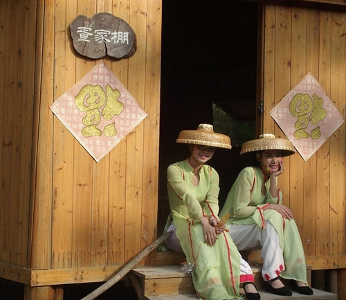 在疍家婚禮巡演中,由“男方家”沿著指定路線前往“女方家”疍家棚,接著“坐艇”前往“拜堂”,期間有美妙的疍家民謠、咸水歌表演。在長廊門口的疍家迎賓女,身穿疍家服飾迎接嘉賓、游客等參觀疍家風情長廊并講解。最后是疍家女民兵巡演及歡樂體驗拉大網捕魚活動。