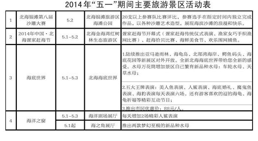 北海各景區(qū)五一特色活動(dòng)總匯