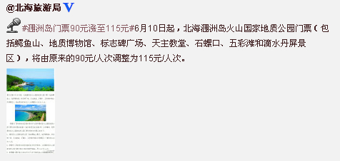 (北海旅行社訊)來自北海旅游局官網(wǎng)12日的消息,經(jīng)自治區(qū)物價局批準,從6月10日起,北海潿洲島火山國家地質(zhì)公園門票價格(包括鱷魚山、地質(zhì)博物館、標志碑廣場、天主教堂、石螺口、五彩灘和滴水丹屏景區(qū)),由原來的90元/人次調(diào)整為115元/人次。
