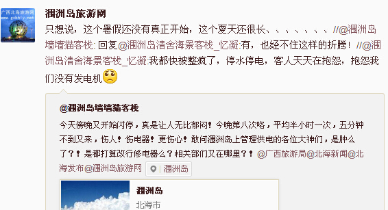 (北海旅行社訊)每年除了法定長(zhǎng)假,就數(shù)七八月份北海的旅游市場(chǎng)最為火爆了,熱門(mén)景點(diǎn)潿洲島更是大多數(shù)人非去不可的。潿洲島景色雖美,但是由于遠(yuǎn)離內(nèi)陸,物質(zhì)運(yùn)輸成本非常高,特別是夏季游客一多,水電供應(yīng)壓力直線上升,出現(xiàn)不定時(shí)限電停水是非常常見(jiàn)的,不僅游客難受,居住在島上的島民也苦不堪言。