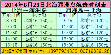 8月23日北海潿洲島航班時刻