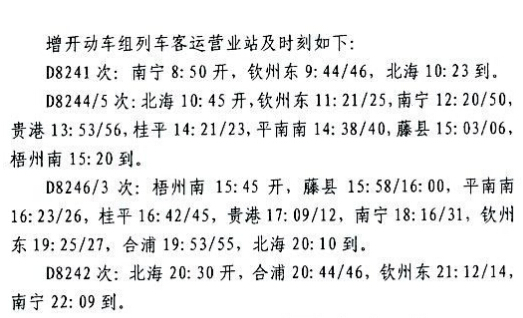 國(guó)慶北海方向再增開(kāi)四趟動(dòng)車(chē)
