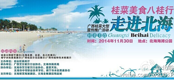 為進(jìn)一步引導(dǎo)餐飲業(yè)加快轉(zhuǎn)變發(fā)展方式,打造桂菜品牌,培育餐飲名店,營造有利于餐飲業(yè)發(fā)展的良好社會(huì)氛圍,由廣西壯族自治區(qū)商務(wù)廳主辦,廣西烹飪餐飲行業(yè)協(xié)會(huì)、北海市商務(wù)局聯(lián)合承辦的“桂菜美食八桂行—走進(jìn)北!毙麄骰顒(dòng)將于11月30日在北海海灘公園舉行。