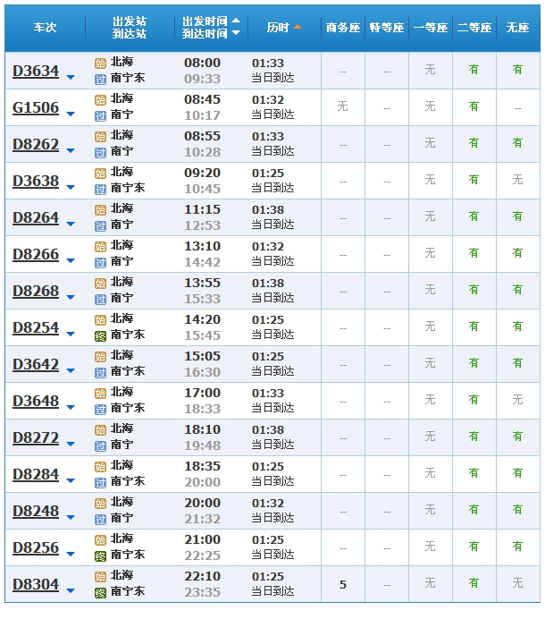 3月20日起,南寧與杭州東的G1506次動(dòng)車,將正式延長至北海,車次保持不變,而此前在春運(yùn)期間開通的該次動(dòng)車為臨客列車。調(diào)圖之后,北海與杭州東間“雙邊”開行,北海旅客可以通過G1506/5這對動(dòng)車快速到達(dá)湖南、江西、浙江等地。