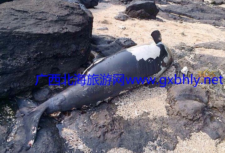 北海潿洲島鱷魚山發(fā)現(xiàn)一條海豚在海灘死亡