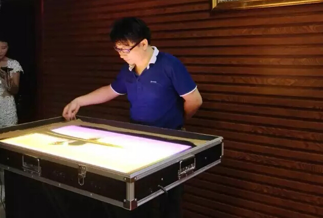 沙畫藝術(shù)是21世紀(jì)剛剛興起的一種與舞臺藝術(shù)相結(jié)合的表演形式,最早由來自匈牙利的世界著名沙畫大師弗蘭克•庫科所創(chuàng)造。它是指在白色背景板上現(xiàn)場用沙子作畫,并結(jié)合音樂通過投影展現(xiàn)在屏幕上。(via北海電視臺)