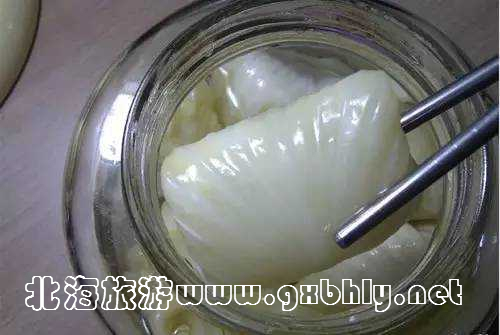 米醋泡菜,“廣西人這種先加醋的方法可以抑制很多細(xì)菌的產(chǎn)生,而且能有效保護(hù)維生素C不流失,并使果蔬中的礦物質(zhì)易于吸收,其中的醋酸還能幫助消化。”她說?磥,愛吃酸菜與廣西人腸胃最健康有密切關(guān)系。
