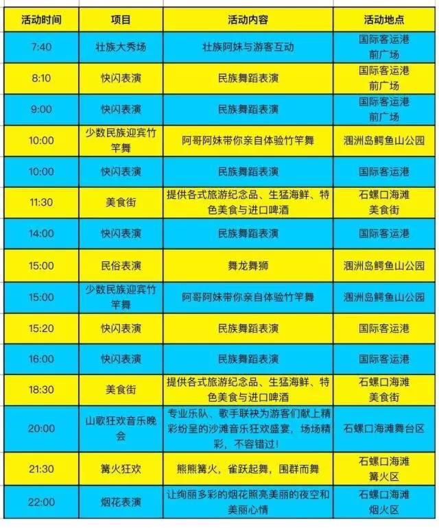 三月三”(3月30日—4月4日)去潿洲島的網(wǎng)友們,你可能在客運碼頭、潿洲島碼頭、火山口公園和潿洲臨時候船廳等以下的地點,遇到一群帥哥美女熱歌熱舞噢。