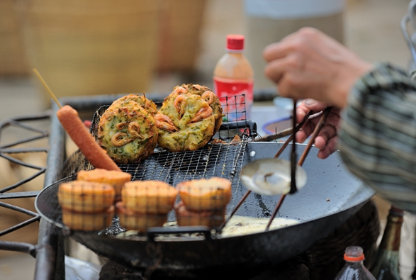 百年老街斑駁的外表下寫滿滄桑的街道兩旁店家鱗次櫛比,氣派的林立著天主教堂、藥堂、特色酒吧、海味特產(chǎn)店、茶坊等等構(gòu)成了老街的特色。你可以和戀人小資情調(diào)地坐在羅馬建筑風(fēng)格的餐廳吃意大利面,斟酌一小杯法國紅酒,在留言墻涂鴉。如果你是獨自旅行,可以排著長隊等一份《轉(zhuǎn)角遇到愛》中提到的風(fēng)靡臺灣的地道小吃---蚵仔煎,說不定會來一場華麗的邂逅。另外,最值得推薦的是北海特色蝦子餅。