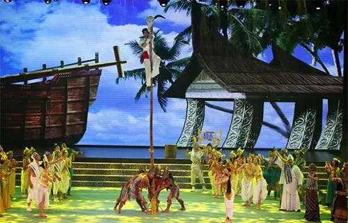 《碧海絲路》是廣西迄今為止第一部涉及歷史最長、范圍最廣的舞劇,以發(fā)生在廣西北海合浦古代海上絲綢之路的歷史為題材,以學(xué)術(shù)研究成果為基礎(chǔ),集歷史文化、海洋文化、亞洲風(fēng)情為一體,通過現(xiàn)代舞劇形式,展示了我國的海洋文化和對外交流史,開創(chuàng)了以舞劇展現(xiàn)海洋文化的先河。
