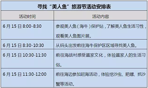 尋找“美人魚”旅游節(jié)活動時(shí)間安排如下:
