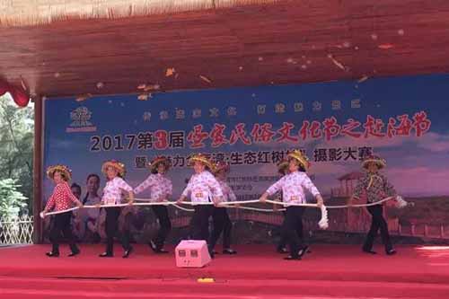隨后,由織網(wǎng)比賽參賽選手們分別獻(xiàn)上的兩支民俗舞蹈將氣氛帶至高潮,現(xiàn)場(chǎng)不斷響起歡笑聲。精彩紛呈的表演結(jié)束后,主持人宣布“魅力金海灣·生態(tài)紅樹林”攝影大賽開機(jī)儀式落下帷幕,而今天的百人織網(wǎng)大賽則正式開始了。