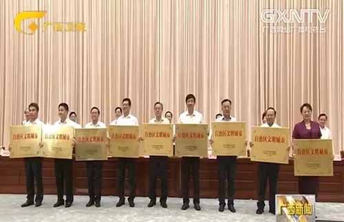 7月21日,廣西自治區(qū)召開精神文明建設大會,對第七屆自治區(qū)文明城市進行了表彰。自治區(qū)黨委、自治區(qū)人民政府決定授予南寧市 、桂林市、柳州市、梧州市、玉林市、來賓市、貴港市、欽州市、北海市9個城市“自治區(qū)文明城市”榮譽稱號。
