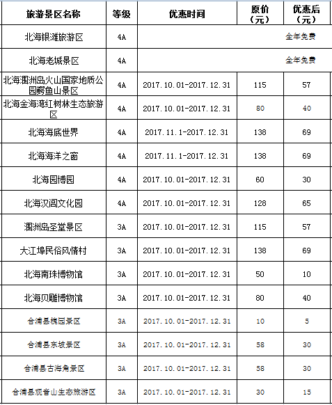 來北海旅行有福了,所有A級景區(qū)門票 五折優(yōu)惠