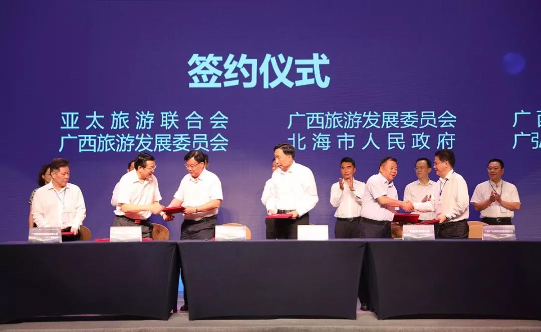 ▲5月14日在北海舉辦的2018海上絲綢之路(北海)旅游產(chǎn)業(yè)發(fā)展投資大會上,廣西旅發(fā)委與北海市政府簽署戰(zhàn)略合作協(xié)議。