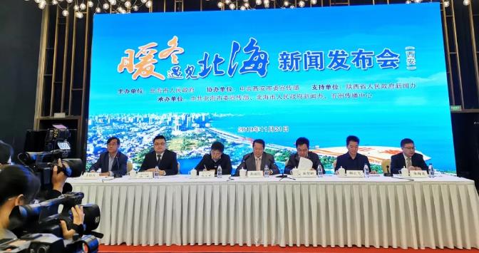 11月21日,北海市人民政府走進(jìn)西安,通過舉辦“暖冬遇見北!毙侣劙l(fā)布會、“面朝大海 心儀北!薄耙粠б宦贰北海市旅游文體推介會、“一帶一路·海絲遇見陸絲”交流會,以及大型歷史舞劇《碧海絲路》的展演,發(fā)出來自北緯21°藍(lán)色大海的“暖冬之約”,搭建了“海絲”城市北海與“陸絲”城市西安的合作交流之橋,積極推動北海與陜西西安、周邊各省市以及國內(nèi)外城市優(yōu)勢互補、交流合作,搭建“海絲”和“陸絲”聯(lián)誼互動、合作發(fā)展的新平臺!芭鲆姳焙!毙侣劙l(fā)布會在當(dāng)天上午舉辦,中共北海市委宣傳部常務(wù)副部長、北海市人民政府新聞辦主任,中共北海市委、北海市人民政府新聞發(fā)言人蘇遠(yuǎn)信發(fā)布新聞,向到場嘉賓和媒體詳細(xì)介紹了相關(guān)情況。新聞發(fā)布會由五洲傳播中心文化交流中心主任付平主持。