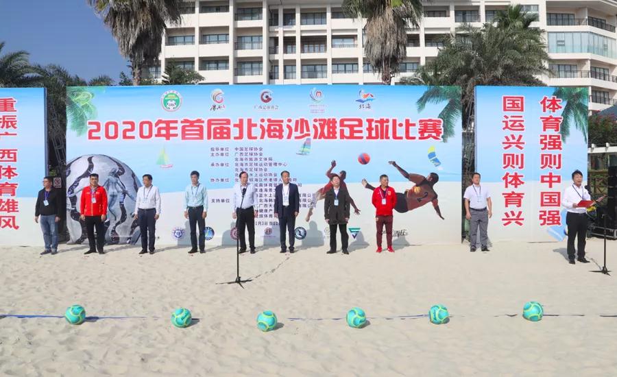 11月3日下午,2020年首屆北海沙灘足球比賽開幕儀式在我市僑港海濱浴場(chǎng)舉行。中國(guó)足協(xié)社會(huì)足球部部長(zhǎng)李久全,自治區(qū)體育局黨組副書記、副局長(zhǎng)、廣西足協(xié)主席謝強(qiáng),市政府副市長(zhǎng)歐余軍,市政協(xié)副主席、市足協(xié)顧問葉宗沛,國(guó)家沙灘足球隊(duì)領(lǐng)隊(duì)付玉培,廣西足協(xié)常務(wù)副主席龐東霞,市旅游文體局黨組書記李才能,市旅游文體局副局長(zhǎng)梁吉棉,銀海區(qū)副區(qū)長(zhǎng)王道波,廣西足協(xié)副主席、市足協(xié)主席李勝遠(yuǎn)等領(lǐng)導(dǎo)嘉賓出席開幕式;組委會(huì)各成員單位的領(lǐng)導(dǎo),裁判員和各參賽隊(duì)伍的領(lǐng)隊(duì)、教練員、運(yùn)動(dòng)員,新聞媒體,以及市體育運(yùn)動(dòng)學(xué)校、區(qū)市共建水上項(xiàng)目和社會(huì)各界群眾約500人參加開幕式。
