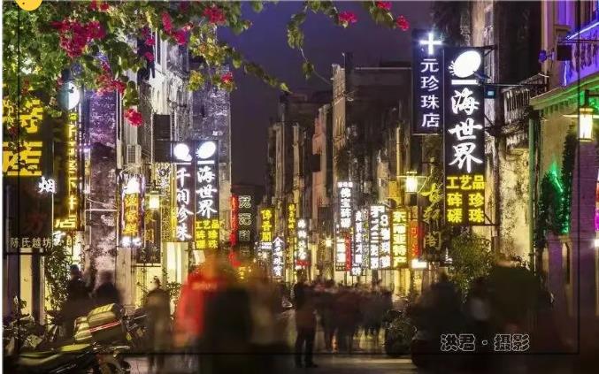 如今的老街依舊是商鋪林立,街道兩側(cè)的店鋪里,商品琳瑯滿(mǎn)目。游客可以在珠寶店里挑選的心儀的項(xiàng)鏈,在美食攤前品嘗熱乎乎的蝦餅,在咖啡館里喝濃郁飄香的咖啡,甚至可以在街邊聽(tīng)一場(chǎng)音樂(lè)秀。每當(dāng)夜幕降臨,老街華燈初上。這條彌漫著商業(yè)氣息的老街,雖已經(jīng)歷百年風(fēng)雨,但它仍是北海最美的夜色之一,仍是商家和小販的淘金街、市民和游客的青睞地。
