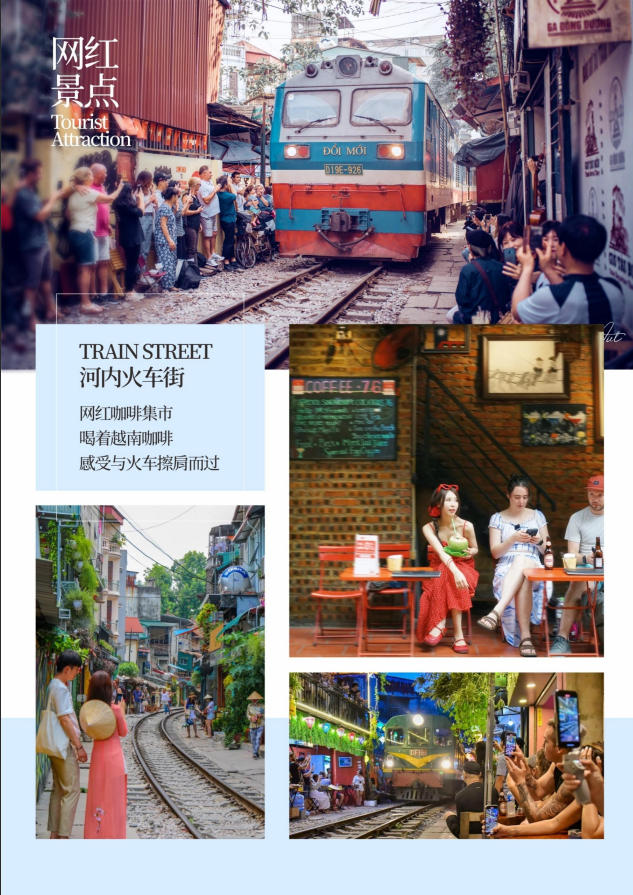 隨后前往網(wǎng)紅打卡地:本地人才知道的河內(nèi)【火車街】。有一條鐵路,穿越河內(nèi)人的前廊,沉浸在人們的生活中。穿越這里的“傳奇”鐵路彎道吸引了眾多國際游客。從它在外國報紙上刊登作為每次來河內(nèi)必去的地方的那一天起,火車附近就非常繁忙。但它的安靜空間并沒有被打破。來自世界各地的游客前來參觀,他們都在“培育”這個村莊,因?yàn)檫@里的人們每天都在保護(hù)它。馬路兩旁是一排排房子緊挨在一起,有著可愛的小攤位和茶點(diǎn)咖啡館。當(dāng)火車緩緩駛過,超近距離感受到火車的轟鳴和力量,體驗(yàn)與火車“零距離”接觸的驚險與刺激。超驚險的感覺!(溫馨提示:此為贈送項(xiàng)目,如遇交通管制無法進(jìn)入游覽,不退費(fèi)用。)