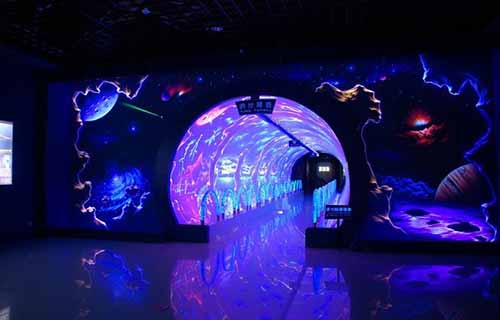 國內(nèi)絕無僅有的熒光純手工壁畫,由日本著名熒光畫大師遠山先生花了3個多月畫成,價值超三百萬元。整個壁畫描述了海洋形成、發(fā)展過程和未來的遐想,即海洋的昨天、今天和未來,在這里你可以完全放飛你的想象;該壁畫另一奇妙之處:如果關閉熒光燈,壁畫會變成一面白墻,什么也不見,但是打開熒光燈后,畫面栩栩如生,層次分明,你不得不驚嘆大師的高超技藝。
