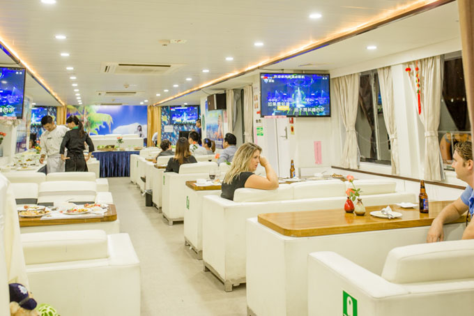 北海市北面、南面、西面三面環(huán)海。乘坐銀灘明珠號/祥和號游輪出海游(游覽時間2小時左右---安全、平穩(wěn)、舒適的雙體豪華客輪,同時容納99人、配備觀光平臺,高級靠背椅、空調(diào)、高級音響設(shè)備、游船途經(jīng): 2. 古代海上絲綢之路出? 3.本土文化濃郁的地角漁村 4.海上"蒙古包"--海洋牧蠔場 5.外沙海鮮島 6.北海軍港、海警、海關(guān)碼頭 7.紅帆海濱 8.北海深水港 9. 海角孤峰--冠頭嶺(北嶺) 10.海上牧區(qū)--沙占魚釣魚場 11.海上人家 12.冠頭嶺一帶常有國家一級保護動物白海豚出沒。——船上免費提供:海上垂釣,東南亞風情舞蹈表演秀、民族舞、TOP舞、趣味游戲。
