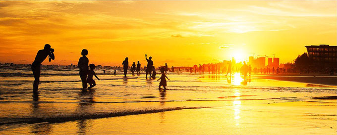 銀灘是北海主要旅游點,是國務院1992年10月4日批準建立的國家級旅游度假區(qū)。度假區(qū)位于北海市東南部海濱,東至大冠沙,西起僑港鎮(zhèn)漁港,銀灘東西綿延約24公里。北海銀灘原來叫"白虎頭",因為從地圖上看整個區(qū)域象一個張開嘴的大白虎。北海沙灘上的沙是上等的石英砂,在陽光的照射下,潔白、細膩的沙灘會泛出銀光,故后改稱銀灘。這里的海水水質清潔,透明度在2米以上。而且這里的海水退潮快,漲潮慢,所以游泳安全系數(shù)很高,銀灘附近海域每年有9個多月可以入水游泳。這里空氣中負離子含量為內地城市的50至l000倍,所以特別清新,是各類慢性及老年性疾病患者最適宜的療養(yǎng)場所,有"南方北戴河"之譽。
