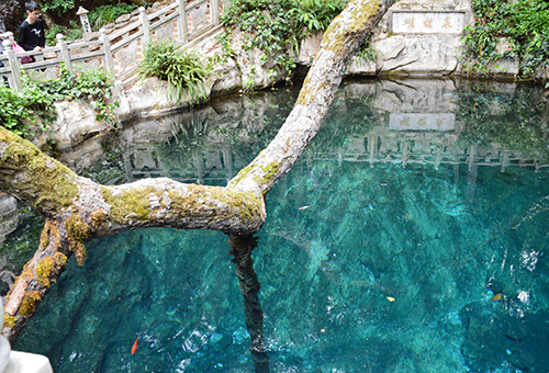 從縣城出發(fā),平坦的國道兩旁青峰壁立,田疇如織,車行山間,峰回路轉(zhuǎn)。路邊的景點令人應(yīng)接不暇,有雄獅靜坐、有悟空撲火、有八戒旁觀、有金貓出洞,或仙桃叢叢、或龍角錚錚......車行約20分鐘,我們便看見公路邊一山峰石壁上有一只巨大的“蝴蝶”正在展翅飛翔,這就是著名的蝴蝶泉景區(qū)了。這石壁上的巨蝶人們稱之為“帝王蝶”,也叫金裳鳳蝶。它是中國蝶類中體形最大的一種。這只“蝴蝶”的造型面積約有280多平方米,堪稱天下一絕。國家文化部前副部長、當(dāng)代著名詩人賀敬之先生到蝴蝶泉景區(qū)參觀后欣然題詞:天下第一蝶。