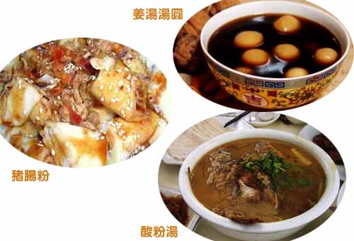 姜糖湯圓:選用當?shù)氐膬?yōu)質(zhì)糯米,浸水1小時后撈起晾干,用石磨磨成細粉,壓勻成小片粉皮;選用優(yōu)質(zhì)花生、芝麻、椰子絲搗成碎細小塊,滲入粉紅糖,用粉片包緊成手拇指大的圓形湯圓;在鐵鍋滾水中加入適量的生姜片,湯圓落鍋后15分鐘便可撈起;在碗里食用,加入適量的姜糖水,味道清涼,甜滑可口。